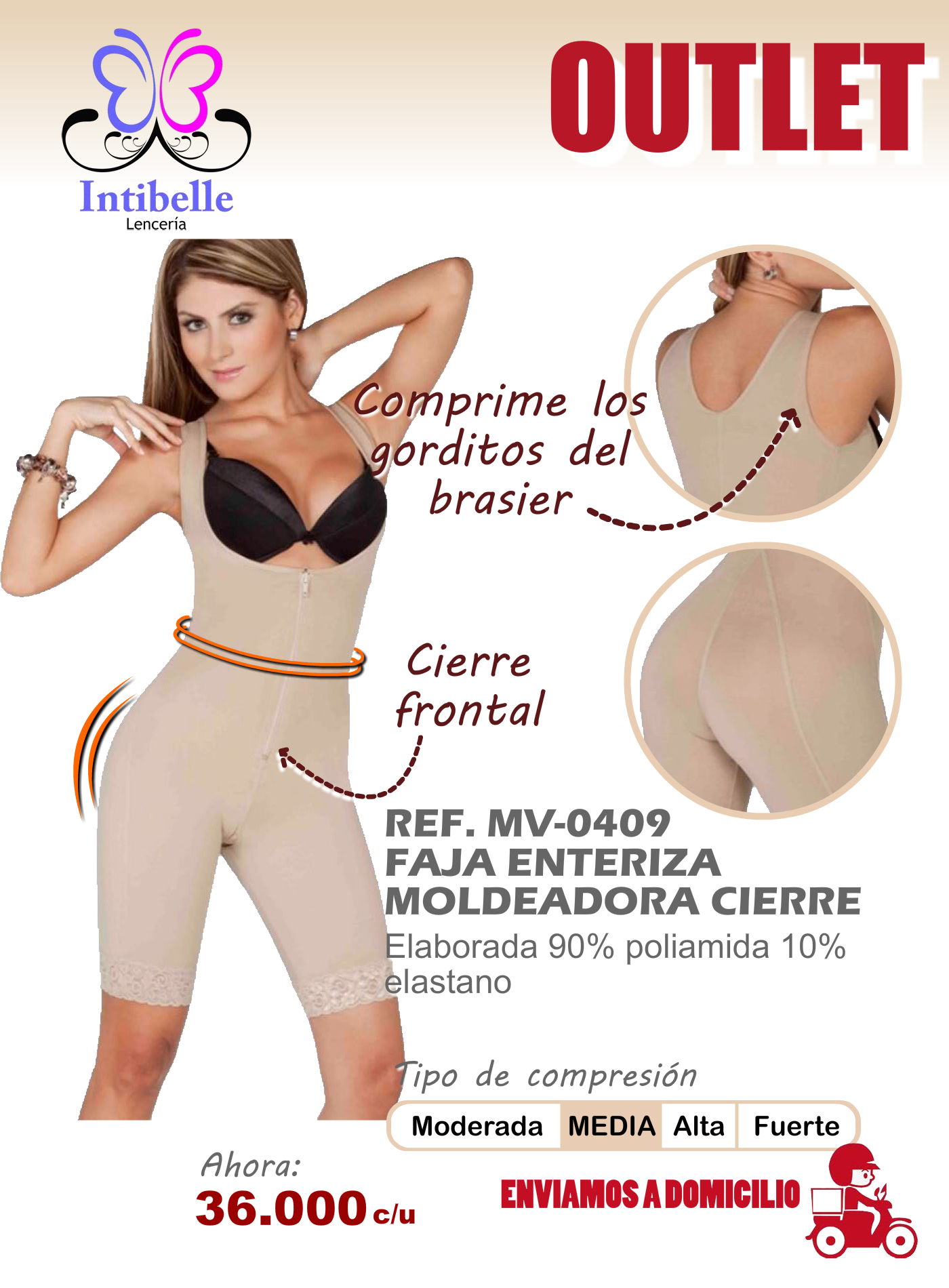 Faja enteriza moldeadora con ganchos y sierre en la parte frontal, compresión media.
