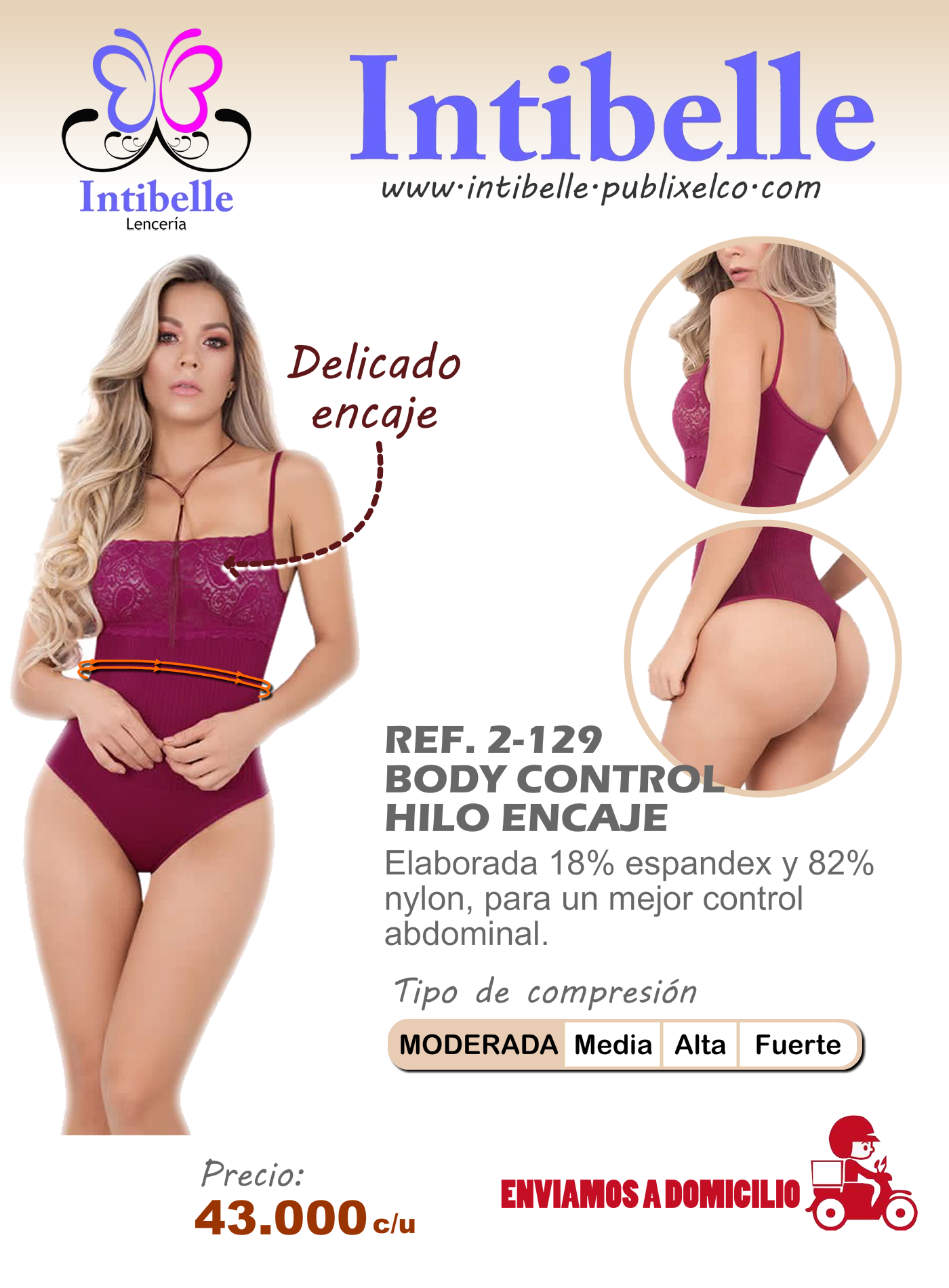 Faja body encaje tipo hilo con broche ajustable de compresión moderada.