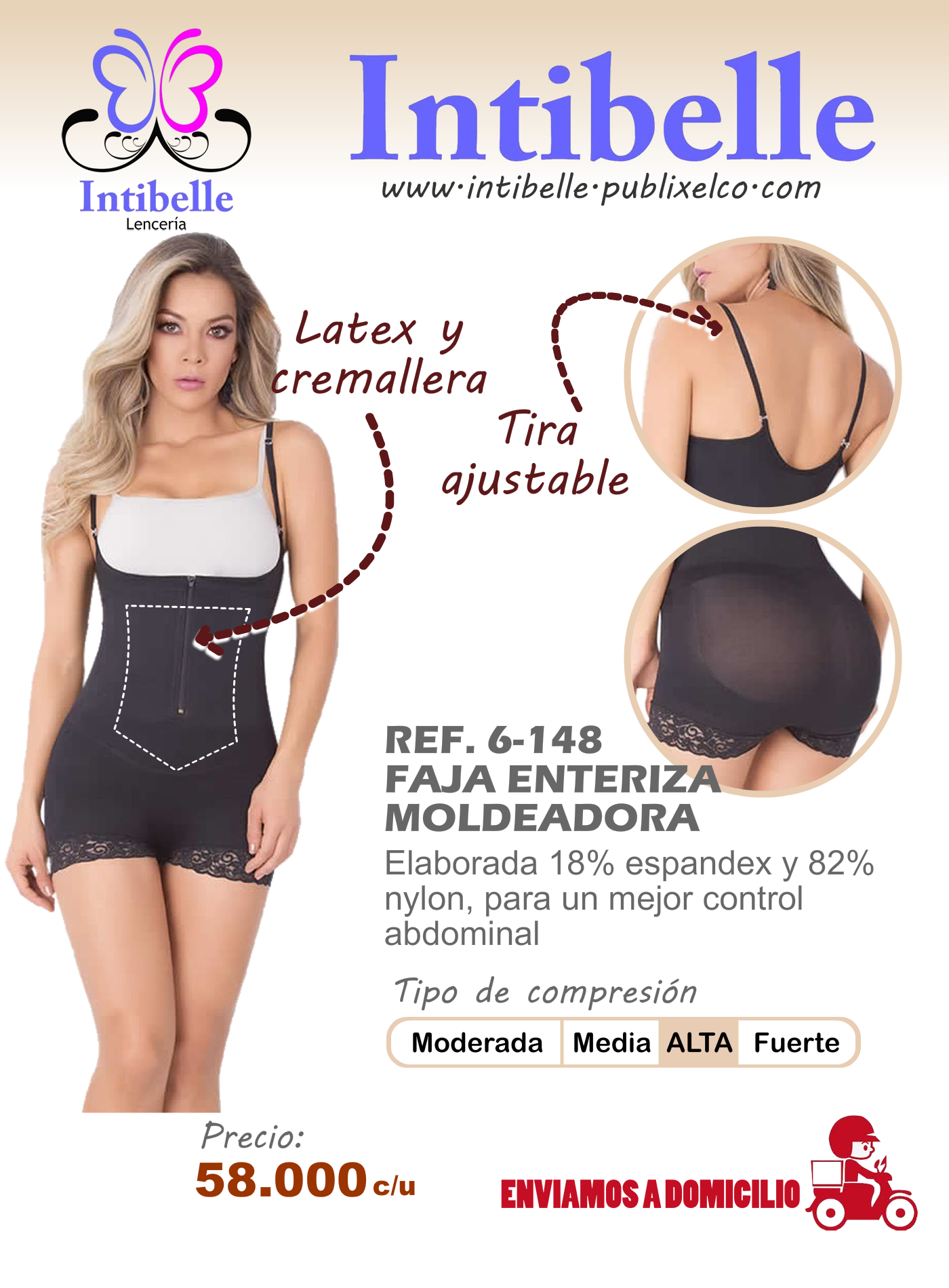 Faja senos libres muy completa con cremallera para mayor comodidad en el momento de la postura, posee látex interno de alta compresión para el abdomen y viene con un bello levanta cola moldeador, las tiras son ajustables y removibles.