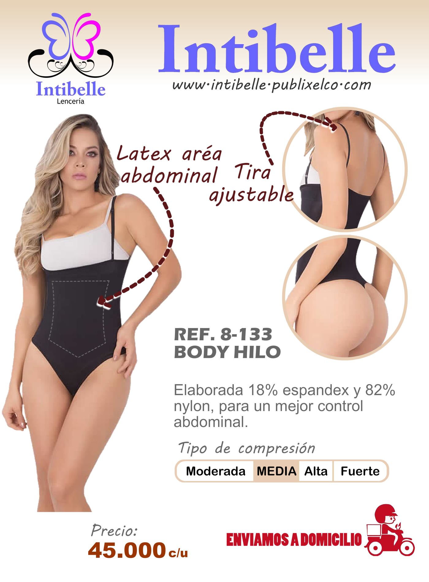 Faja para utilizar tipo strapless ya que sus tiras son ajustables y removibles, con látex abdominal para mayor compresión y ganchos ajustables en la parte inferior.
