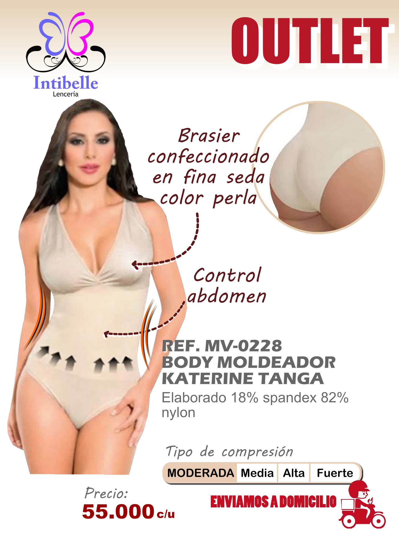 Body moldeador tipo tanga con brasier confeccionado en fina seda color perla y con una compresión moderada.